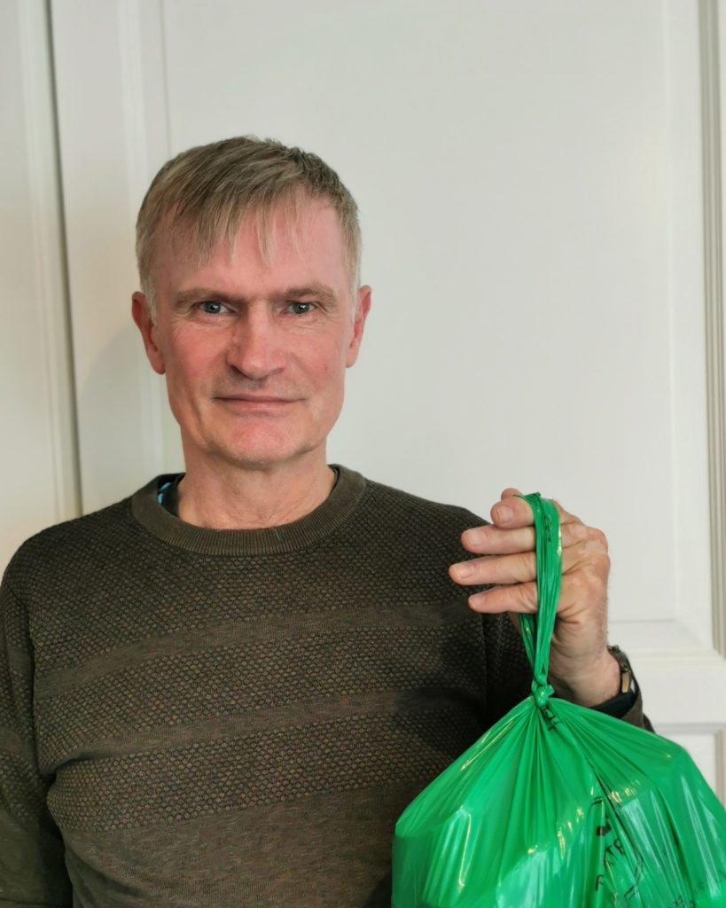 Både han og kona er nøye på å sortere alt matavfall i den grønne posen, og har deltatt i poselotteriet siden det startet. «Vi er flinke til å sortere alt avfall og ønsker å være miljøvennlige»