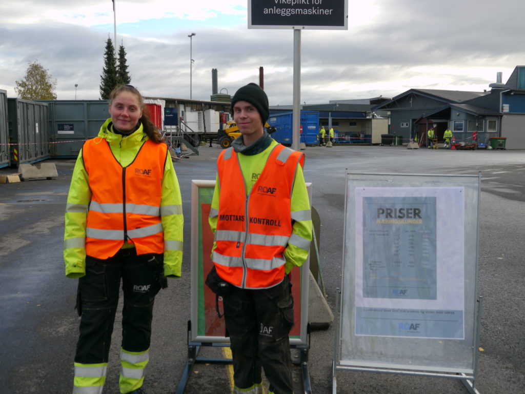 MOTTAKET: Frida Pettersen og Fredrik Pettersen ved gjenvinningsstasjonen på Skedsmo tar i mot både private kunder og næringskunder hver eneste dag. I uke 42 går hele to dagers omsetning fra næringskundene direkte til årets TV-aksjon.