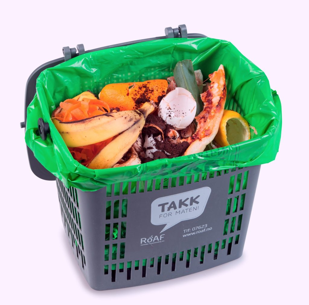 DIN INNSATS NYTTER: Dersom du kaster matavfallet kun i den grønne posen, er du med på å gjøre verden enda grønnere. Matavfallet sendes til Den Magiske Fabrikken i Vestfold, og der gjøres det om til biogass og biogjødsel. Du kan fra en gratis kurv til matavfall ved å henvende deg til en av ROAFs syv gjenvinningsstasjoner.